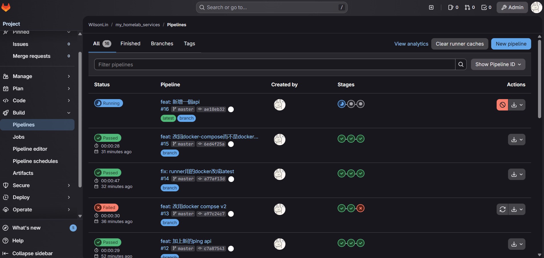 設定完後回到gitlab網頁中應該就可以看到燈號變成綠色的了